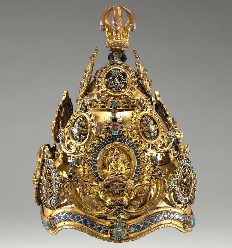 5. มงกุฎของพระวัชรจารย์ฝั่งด้วยลาพีสลาซูลี เนปาล ศตวรรษที่ 14.