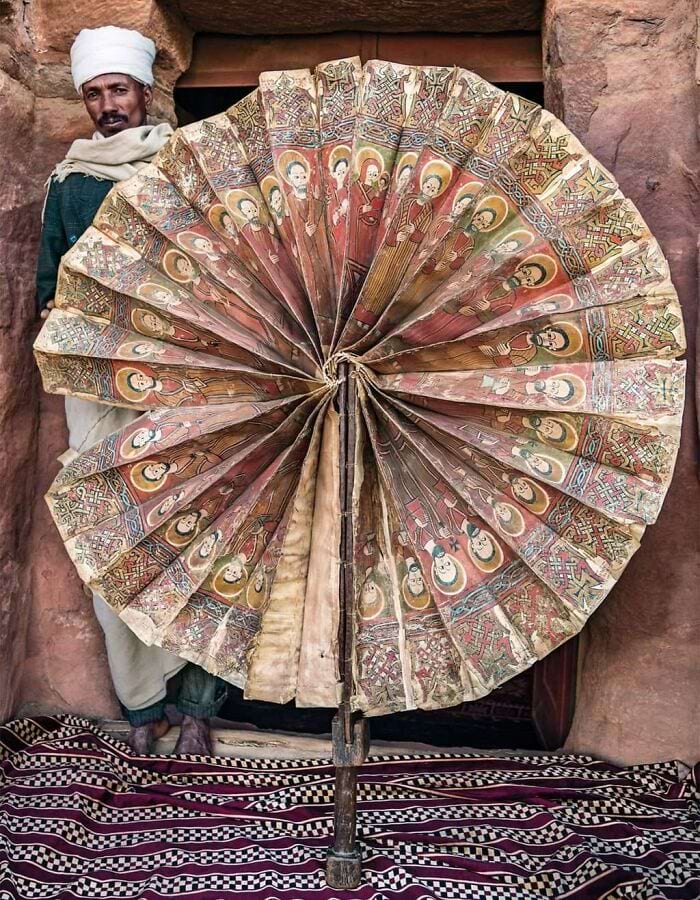 1. พัดในพิธีศตวรรษที่ 15 ของโบสถ์ Abuna Abraham แห่ง Debre Zion ที่ภูมิภาค Tigray ประเทศ เอธิโอเปีย.