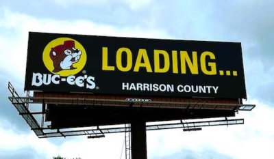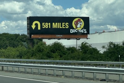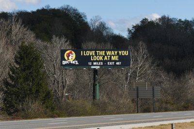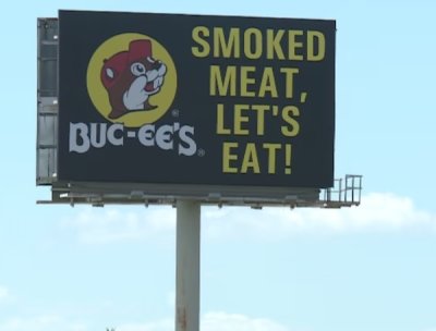 ป้ายจราจรของ Bue - ee ที่ทำให้ปั้มน้ำมันอื่นอาย.