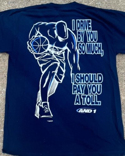 AND 1 เป็นบริษัทผลิตรองเท้า และ เสื้อผ้าบาสเกตบอล ที่ก่อตั้งในปี 1993 ความสำเร็จของบริษัทมาจากการขายเสื้อยืด และ อุปกรณ์ให้กับ" ผู้เล่นบาสเกตบอล ข้างถนน" การตลาดยังรวมถึง การพูดจาข่มขู่ และ สโลแกนที่แสดงถึงทัศนคติ ซึ่งเป็นสิ่งที่แบรนด์ บาสเกตบอลทีมอื่น ๆ ไม่เคยทำมาก่อนหน้านี้.