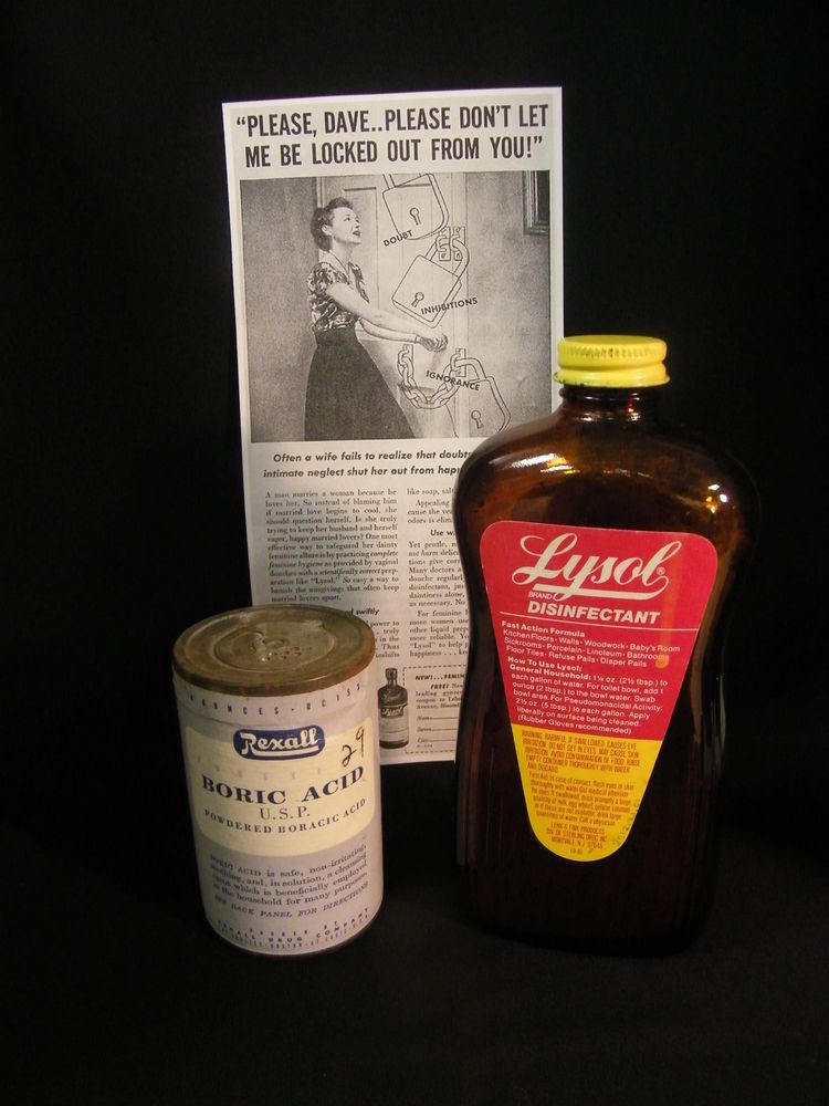 1. การสวนล้างช่องคลอดด้วยน้ำยาฆ่าเชื้อไลซอล. ไม่น่าเชื่อเลยว่าในช่วงทศวรรษที่ 1940-1960 ผลิตภัณฑ์ล้างช่องคลอดที่ได้รับความนิยมมากที่สุดอย่างหนึ่งคือ...ไลซอล ในปัจจุบันไลซอล เป็นที่รู้จักกันในฐานะน้ำยาฆ่าเชื้อที่รุนแรงสำหรับทำความสะอาด,