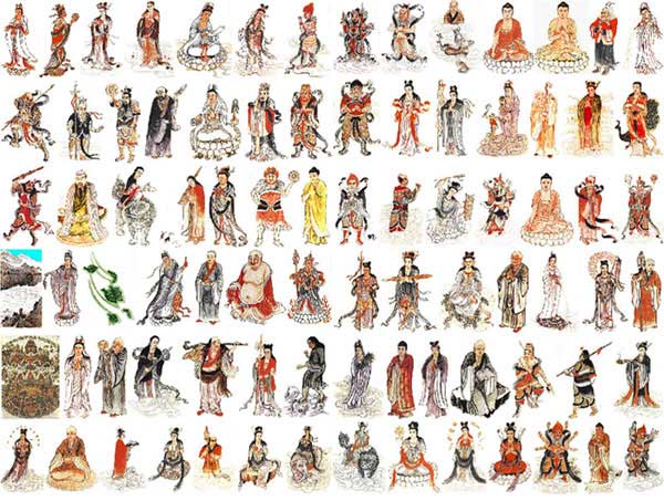องค์พระอวโลกิเตศวรโพธิสัตว์ ปรากฏเป็นท่านท้าวจตุโลกบาลและองค์เทพราช พร้อมทั้งองค์เทพทั่วไปเสด็จพร้อมด้วยเทพและภูตผีปีศาจบริวาร ในใต้บังคับบัญชา