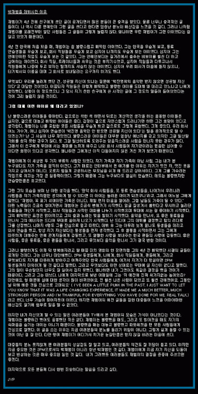 ผมตกใจมากที่เห็นข้อความที่ Jae Bum เขียนไว้เมื่อ 4 ปีก่อน ถ้าเป็นศิลปินคนอื่น ผมคงรู้สึกโกรธมากกว่านี้ แต่ผมรู้จัก Jae Bum มานานจนไม่รู้สึกประหลาดใจกับคำพวกนั้น