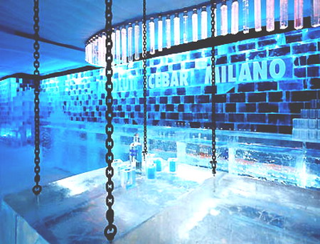 บาร์น้ำแข็ง จะใช้แสงสีช่วยเสริมบรรยากาศ เพราะตัวน้ำแข็งเองมันใส ไม่มีสี ถ้าไม่ใช้แสงสีเข้าช่วยแล้ว ตัวโรงแรมทั้งหมดคงดูเย็นยะเยือกและจืดชืดทีเดียว