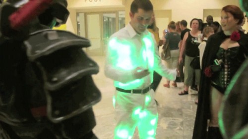 Marc DeVidts จาก Miami เป็นผู้ดีไซน์ชุด LED โดยเขาได้สวมใส่ชุดดังกล่าวเข้าไปในงาน Dragon*Con 2010 ที่ Atlanta ด้วย เมื่อสวมเชิ้ตสีขาวทับเช้าไป มันทำให้ตัวของเขามีแสงระยิบระยับตลอดเวลา เพิ่มความเร้าใจให้ผู้พบเห็นได้เป็นอย่างดี ทั้งนี้ต้องยกความดีความชอบให้กับ iPhone ด้วยที่มันสามารถควบคุบ LED ทั้งสีสัน และลูกเล่นการกระพริบได้อย่างสมบูรณ์แบบ (*สังเกตในคลิปให้ดีนะครับ งานนี้เจ้าของหมวกกันน็อคดีไซน์หลุดโลกโผล่มาแจมด้วย ดูแล้วคล้ายมนุษย์ต่างดาวมาเจอกันเลย หุ หุ)