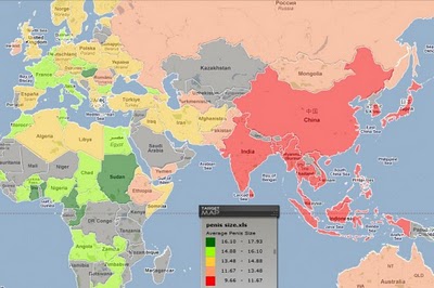แผนที่ดังกล่าวจัดทำขึ้นโดยรวบรวมข้อมูลรายงานค่าเฉลี่ยของอวัยวะเพศชาย ที่สำรวจรวบรวมจาก