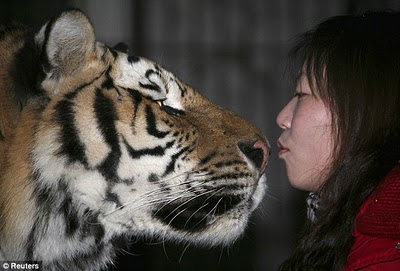 ในเมือง Dalian มณฑล Liaoning ที่มั่นอกมั่นใจ เสือ ของ เธอว่าเชื่องเหมือนลูกแมว