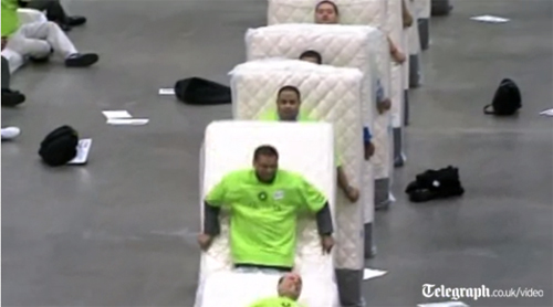 คน ส่วนฟูกที่นอนที่ใช้ในการทำลายสถิติครั้งนี้ จะมีการบริจาคให้กับการกุศลและ