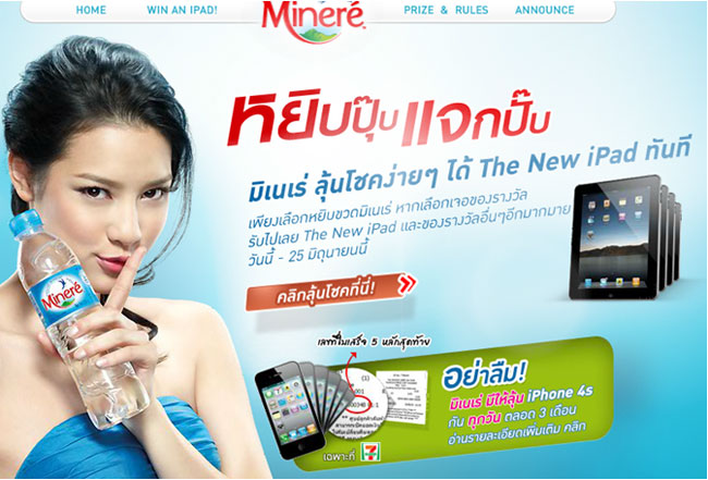 มิเนเร่ให้คุณลุ้นโชคง่ายๆ ได้ New iPad ทันที! เพียงเล่นเกมส์กับ Minere Application แค่ไปหยิบขวดจากตู้ ก็พร้อมแลกของรางวัลมากมาย!