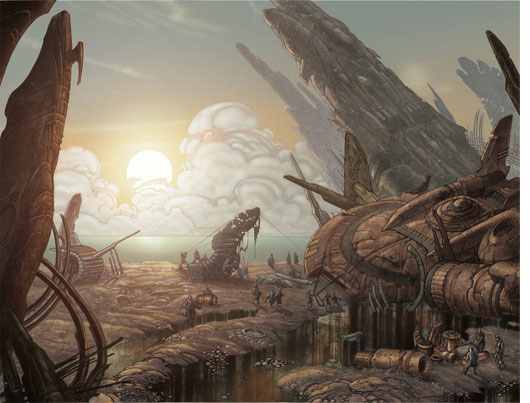 ภาพที่เห็นอยู่นี้เป็นแค่งานออกแบบศิลบ้างส่วนของฉาก บน ฐานทัพเอเลี่ยนบนดาวเคราะห์เล็กน้อย เท่านั้นครับ
