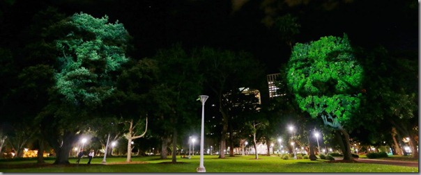 ซากต้นไม้ยักษ์เรืองแสง 3D งานศิลปะที่ Hyde Park South ในซิดนีย์, ออสเตรเลีย