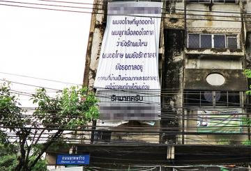 จากการสอบถามชาวบ้านในละแวกนั้นทราบว่า ป้ายดังกล่าวมีผู้นำมาติดไว้บริเวณอาคารนี้นานนับเดือนแล้ว