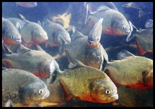 ความจริงแล้วปลาปิรันยาชอบรวมฝูงกันในเขตน้ำตื้นที่มีร่มเงาจากต้นไม้ซะ