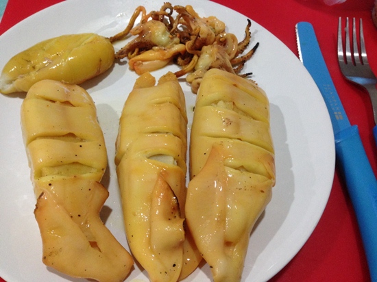 เราสั่งปลาหมึกมา 4 ไม้ กับไข่ปลาหมึก 1 ไม้ แบบไม่ต้องตัดเป็นชิ้นและแยกน้ำจิ้มหิ้วกลับมาทานบ้าน แกะใส่จานกินไปบางส่วน (ไข่หมึก 2 อันกับปลาหมึก 1 ตัว ขณะที่กินรู้สึกว่าแปลกๆค่ะ เลยนำที่เหลือมาชำแหล่ะ ดูตามรูปเลยนะคะ นี่คือชุดที่เหลือในถุง ปลาหมึกไข่ 3 กับไข่ปลาหมึก 1