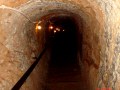 ภายในอุโมงค์ขุดผ่านชั้นหิน เป็นบันไดสูงชัน