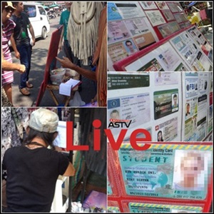 เดินตรงเข้ามาไม่ไกลนัก กวาดสายตาไปทางซ้ายมือพบแผงลอยเล็กๆ เปิดบริการรับทำเอกสารปลอม เจ้าของร้านเป็นชายวัยกลาง นั่งอยู่บริเวณด้านหลังป้ายที่ตั้งโชว์รูปแบบบัตรปลอมต่างๆ โดยที่เขากำลังวุ่นอยู่กับการปริ้นท์ชื่อของลูกค้าลงยังบัตรแข็งขนาดกะทัดรัด ทีมงานฯ สอบถามว่ากำลังยุ่งอยู่หรือไม่
