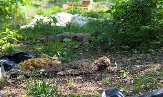 ภาพที่เห็นคือ สภาพของศพที่ผ่านกระบวนการเน่าเปื่อยจนหมดแล้ว จึงได้นำออกมาจากกรงเหล็ก