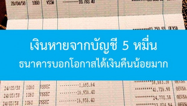 เป็นเรื่องราวจากเว็บพันทิพดอทคอม ซึ่งมีคนมาตั้งกระทู้ว่า "ทำไงดีคะ เงินหายจากบัญชี 5 หมื่น แต่ธนาคารบอกว่าโอกาสได้เงินคืนน้อยมาก T_T" ซึ้งเป็นอีกกระทู้หนึ่งที่ได้รับความสนใจจากชาวพันทิพและโซเชียลเป็นอย่างมาก หลังจากที่ตั้งกระทู้นี้ไปได้ไม่ได้ ก็ได้มีสมาชิกเข้ามาแสดงความคิดเห็นมากมาย กระทูนี้อยากให้ทุกคนได้อ่านและเก็บไว้เป็นอุทาหรณ์