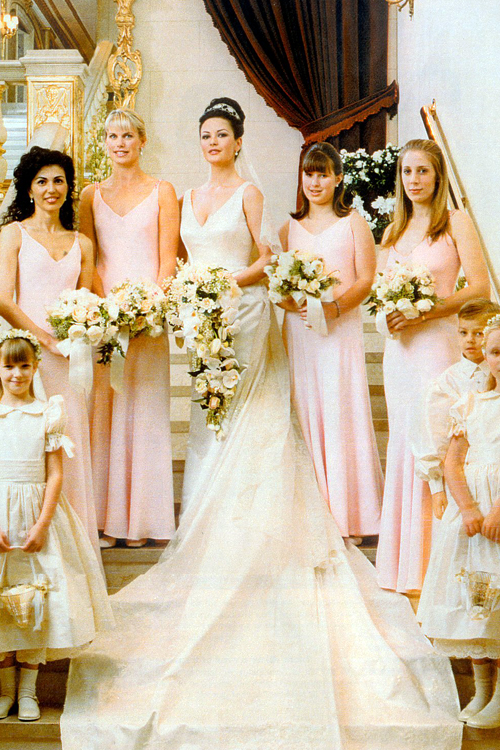 10.Catherine Zeta Jones Wedding Dress ราคา 140,000 ดอลล่าร์ แคเธอรีน ซีตา-โจนส์ แต่งงานกับ ไมเคิล ดักลาส เมื่อปี 2000 ชุดแต่งงานของเธอมีความยาวถึง 6 ฟุต ซึ่งเป็นชุดจากแบรนด์ Christian Lacroix