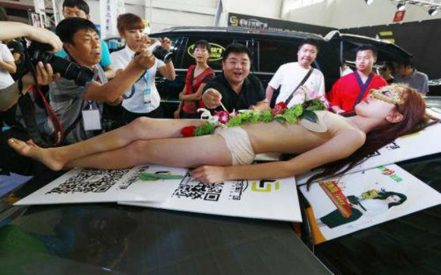 ซึ่งการกระทำดังกล่าวก็ได้สร้างความฮือฮาให้กับชาวเมืองเป็นอย่างมาก เนื่องจากเป็นครั้งแรกของงานที่ใช้ วิธีการนี้ในการเรียกคนดู ซึ่งก็ถือได้ว่าประสบความสำเร็จเพราะหลังจากที่มีสาวซูชิเปลือยขึ้นมานอนโพสต์ท่าอยู่ฝากระโปรงรถ ผู้คนก็ต่างเข้ามารุมดูรุมถ่ายรูปกันเพียบ จนเรียกได้ว่ารถสุดหรูที่นำมาโชว์ในงานการเป็นตัวประกอบไปเลย