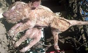 ชาวนาอาร์เจนติน่าพบ"ลูกหมูแปลกประหลาด"เกิดมามี 2 ปาก 8 ขา จนถูกขนานนามว่า"แมงมุมหมู"