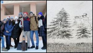 ภารโรงสุดเจ๋งลงมือกวาดหิมะภายในโรงเรียนเป็นรูปภาพต่างๆ เพื่อรอยยิ้มของเด็กๆ