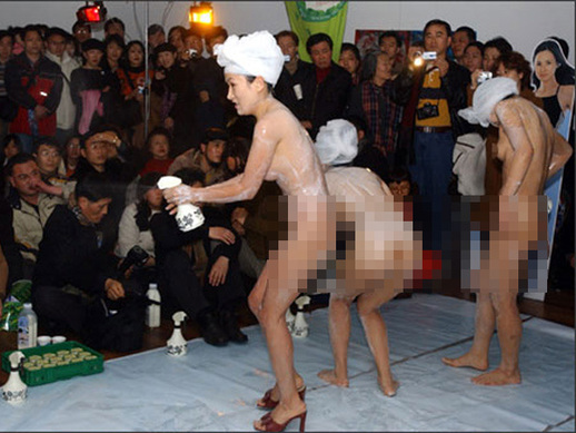 ฮือฮา !! บริษัทจีนจ้าง 3 สาวแก้ผ้า โชว์อาบน้ำกลางห้าง