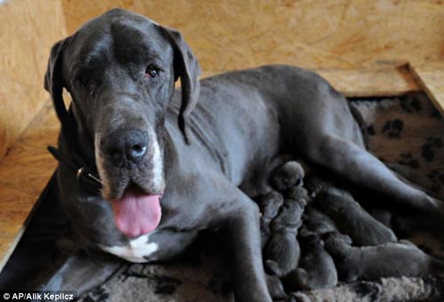 ฮือฮา แม่พันธุ์สุนัข เกรท เดน ให้กำเนิดลูก ถึง 17 ตัว