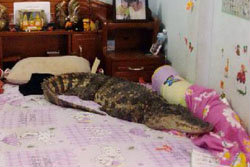 ฮือฮา! จระเข้แสนรู้ ถือศีลกินเจ นอนเตียงคน